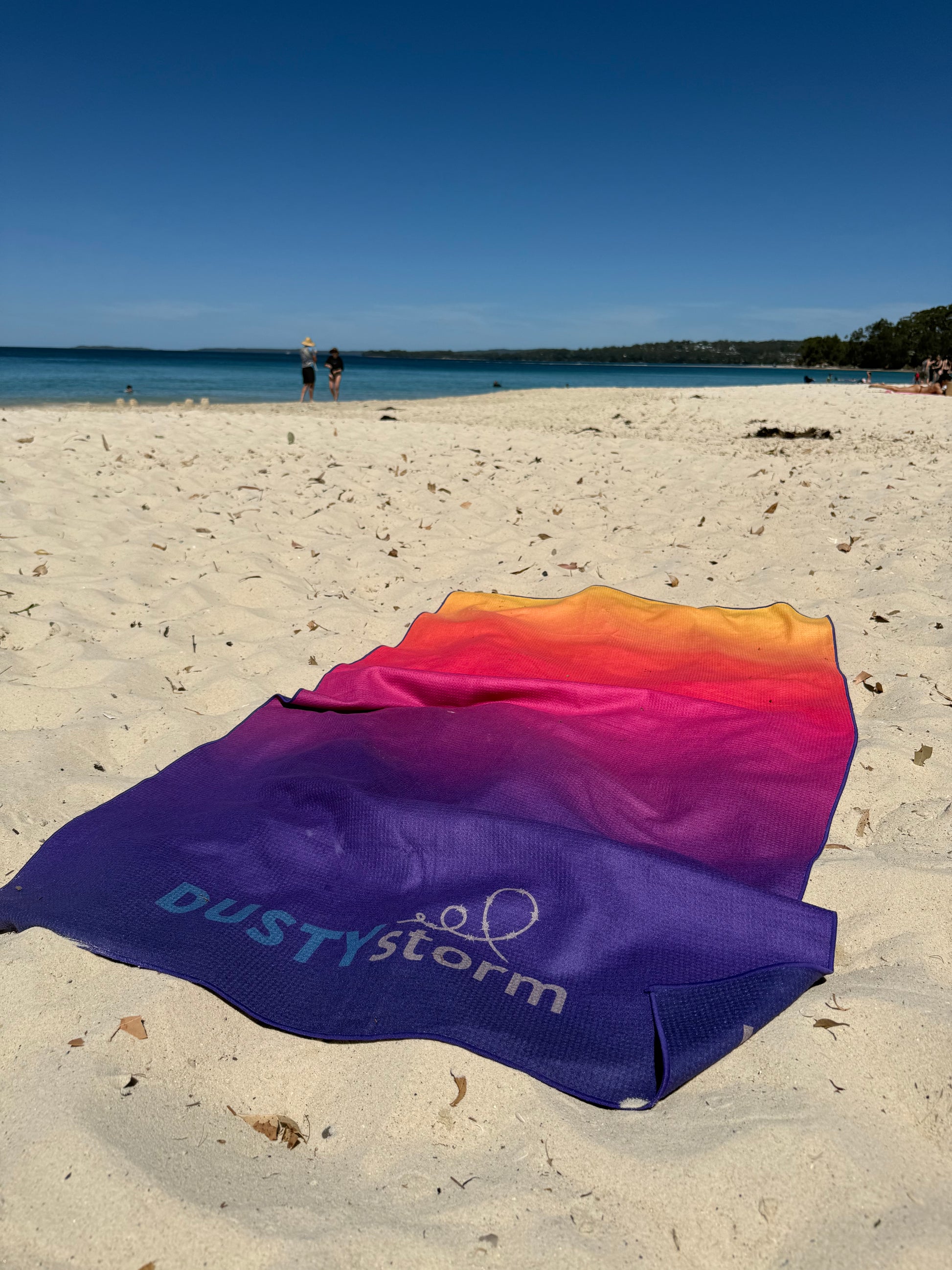 Navy with a floral and skull design on one side and a sunset gradient on the other, the colours in this towel are beautiful!